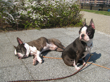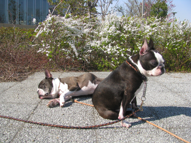 春休みの子供たちから「あいつ等リード持っていないのにジッとしててスゲー!」と言われたけど、ただ2人とも暖かくて気持ち良くなって眠かっただけなんだけどね